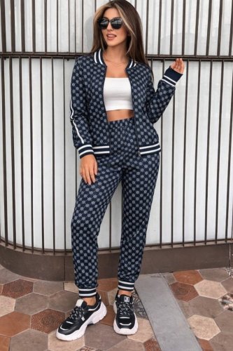 • Kadın uzun kollu önden fermuarlı desenli iki iplik bluz ve pantolon ikili takım